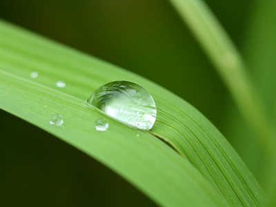 夜の間に大気が冷え込み、草花や木に朝露が宿りはじめる頃。朝日に照らされた露は、光り白い粒に見えます。