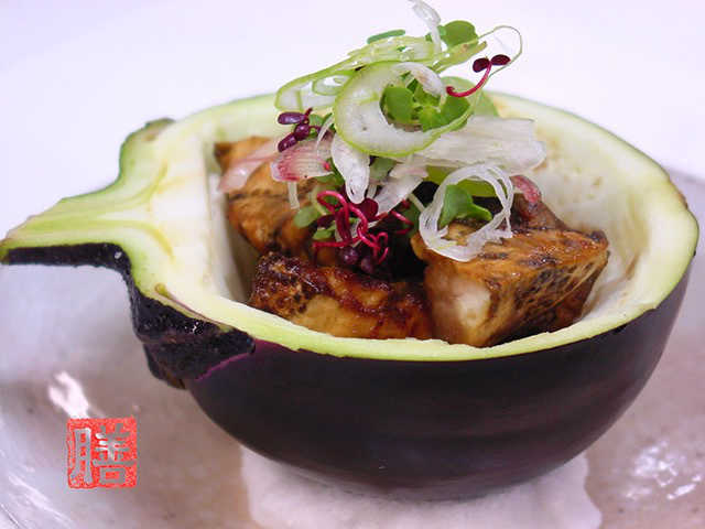 日本でも1000年以上に渡り栽培されており、温帯では一年生植物です。平城京の長屋王邸宅跡から出土した木簡に『進物 加須津毛瓜 加須津韓奈須比』との記述があり、高位の者への進物にナスの粕漬けが使われていたことが判明しました。主成分の93%は水分と糖質で栄養的にはさほど特筆すべきものはありませんが、東洋医学では体温を下げる効果があるとされています。和漢三才図絵ではヘタにしゃっくり止めの効果があるとされていますが、俗信の域を出ないようです。また皮の色素ナスニンは抗酸化作用があるアントシアニンの一種です。焼く、煮る、揚げるなどあらゆる方法で調理されるなすです。淡白な味で他の食材とも合せやすく、また油を良く吸収し相性がとても良い。