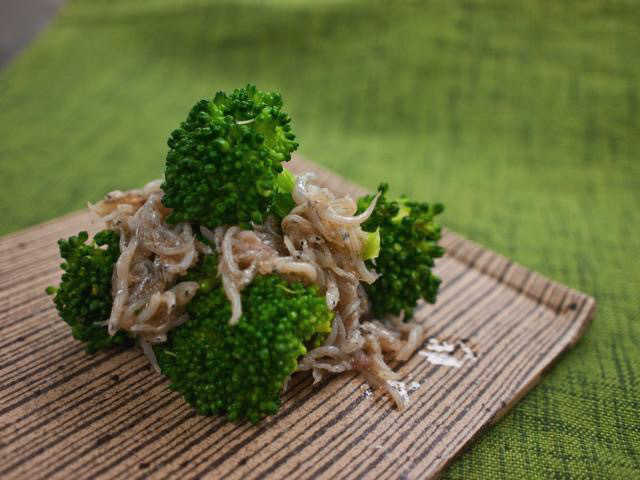 茹でたブロッコリーにドレッシング代わりにかけます。