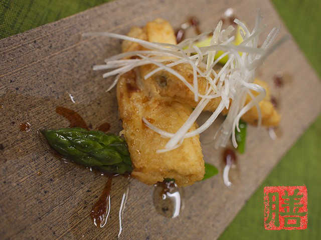3.衣を作り、塩をし穴子にころもをつけ170度の油で揚げる。