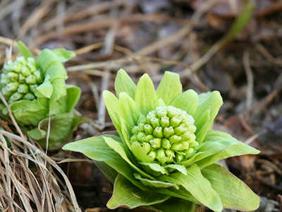 フキノトウはキク科フキ属の多年草で日本原産の山菜で全国の山野に自生しています。ふきのとうはつぼみの部分にあたります。フキノトウは春先にいっせいに芽を吹き出します。自生している天然物は、雪が解け始める頃に出てきます。