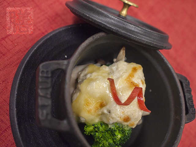 2.しんなりしたら小麦粉を入れ、粉っぽさが消えたら豆乳を入れ、出汁醤油、塩胡椒で味を調整。ホワイトソース状態になったら耐熱皿に入れ、チーズをのせ、トースターで焼色をつけます。