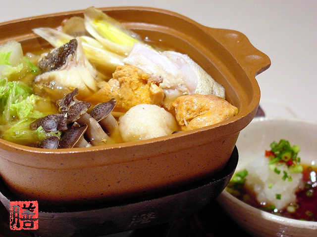 3.白菜の芯、葉、鱈、鮟肝、きのこ、長ネギの順に入れ出来上がり。